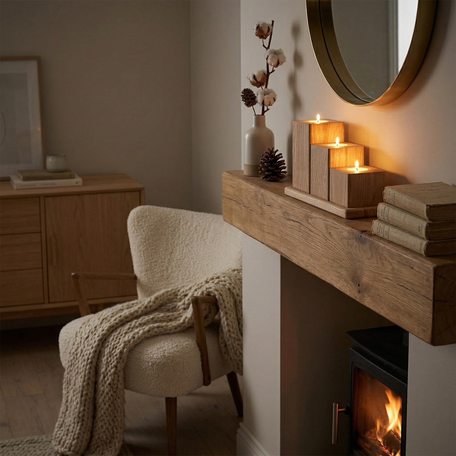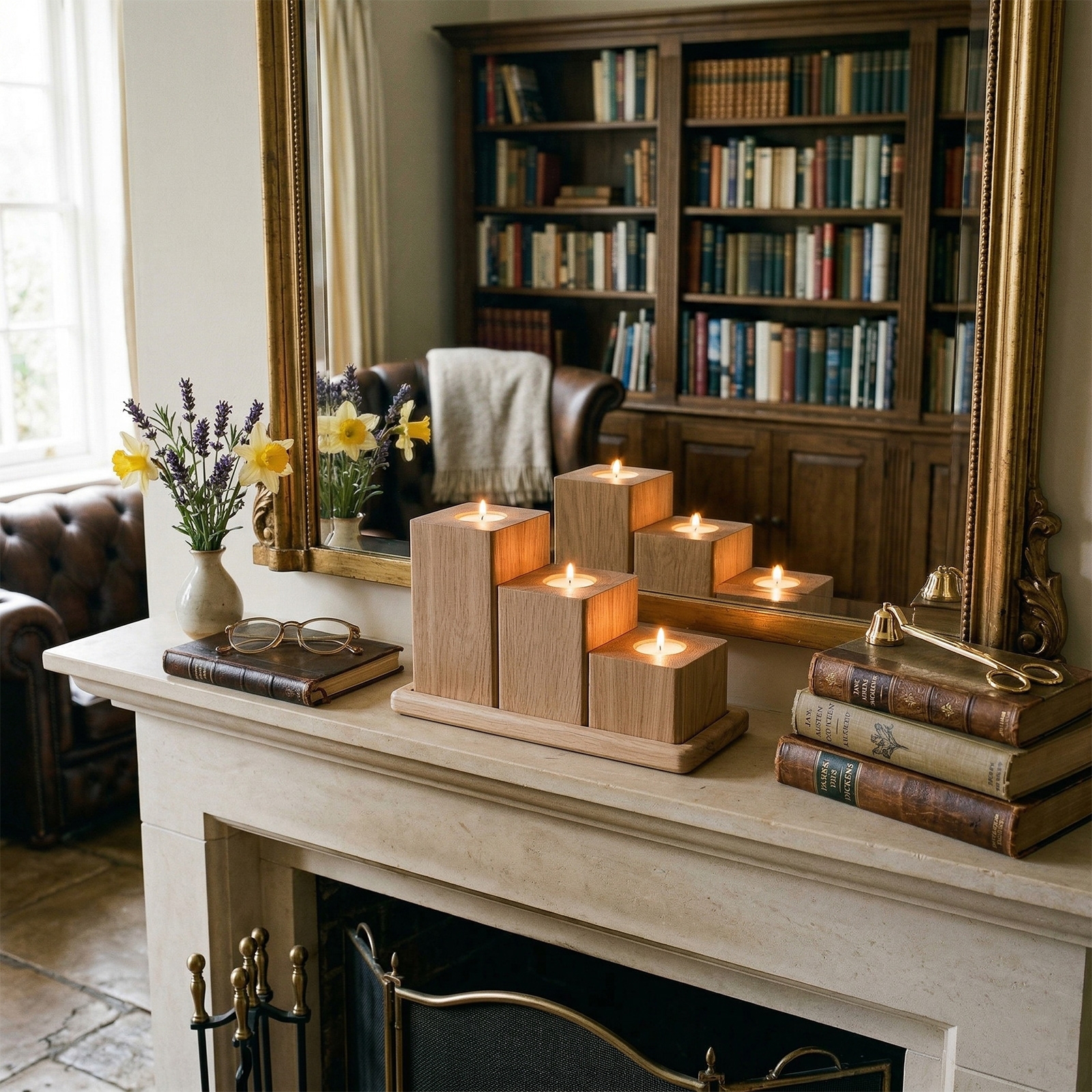 Wprowadź do swojego wnętrza spokój i naturalną elegancję. Nasz zestaw trzech świeczników o zróżnicowanej wysokości, umieszczonych na wspólnej dębowej podstawce, to idealny sposób na stworzenie przytulnej atmosfery w salonie, sypialni czy podczas romantycznej kolacji.