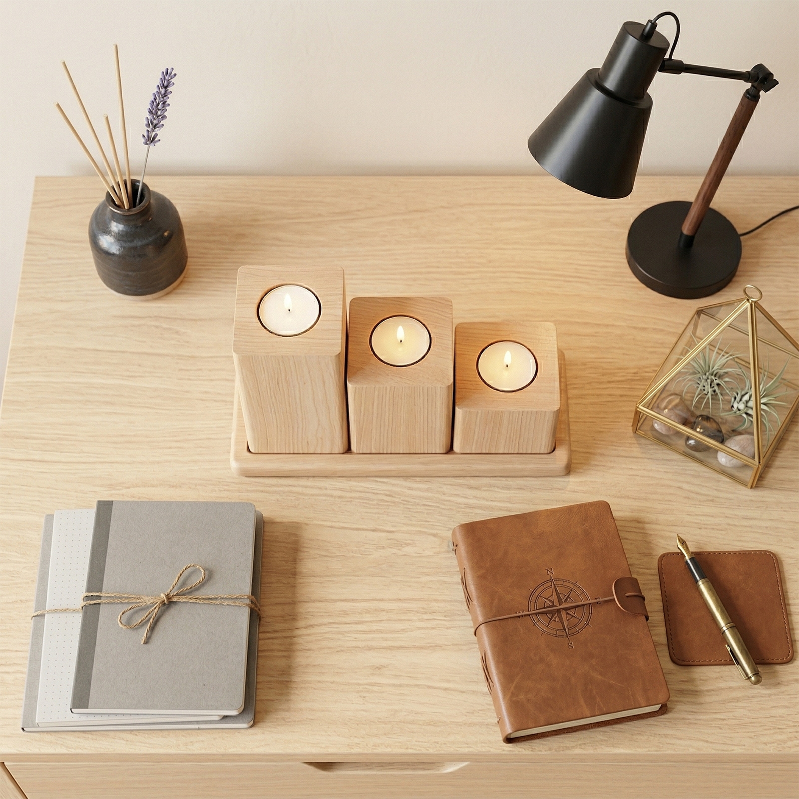 Wprowadź do swojego wnętrza spokój i naturalną elegancję. Nasz zestaw trzech świeczników o zróżnicowanej wysokości, umieszczonych na wspólnej olchowej podstawce, to idealny sposób na stworzenie przytulnej atmosfery w salonie, sypialni czy podczas romantycznej kolacji.